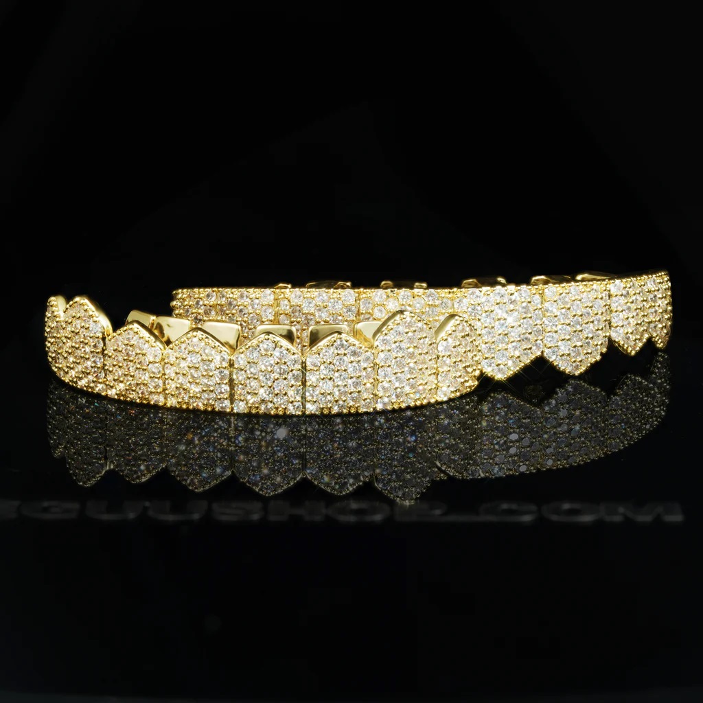 Yellow Gold-Plated Grillz Bar Iced Edition